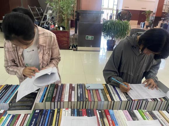 本次书展展示了400余种聚焦法学、政治学、经济学、管理学、新闻传播学、国家安全学、社会学及教育学等学科领域的外文新书,剑桥大学出版社、博睿学术出版社等国际知名出版机构近三年专业书目集中亮相,为师生搭建起零距离接触全球前沿学术成果的宝贵平台。我校师生根据自身的学习和科研需求在现场认真填写订购推荐单,用实际行动参与图书馆的馆藏资源建设。