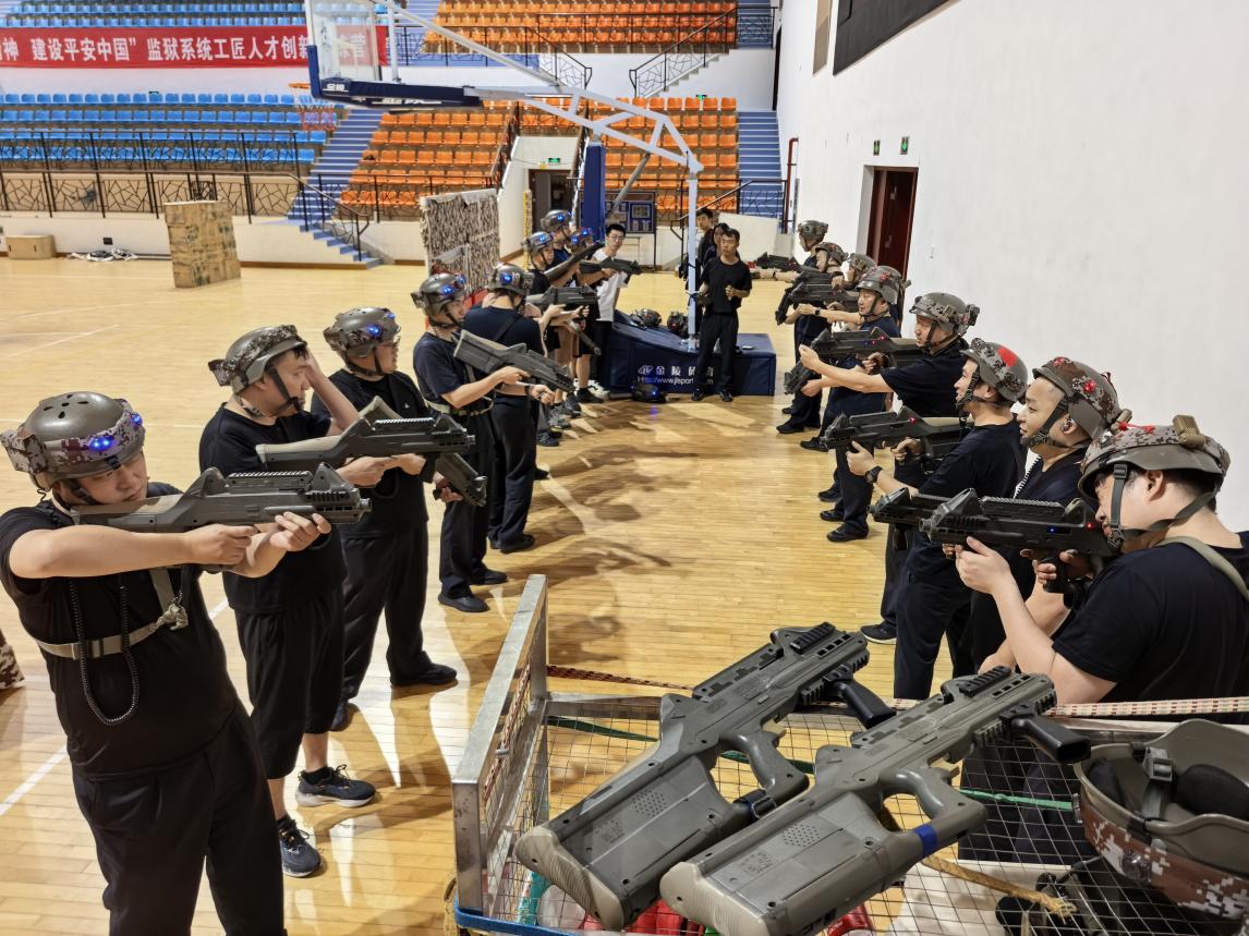 在安检实操演练环节,本次驻训培训开展有:围绕安检规范的沉浸式教学,现场演示手探规范流程,将执法温度融入每个操作细节,提醒参训人员保持高度警惕;安防消防训练,将执法规范化流程中的应急处置流程化作行云流水般的实战动作;体能训练,2000米长跑好比耐力拉锯战,4x100米全装跑更像是实战预演,负重冲刺间,每个呼吸都带着“大安全”守护行动的坚定信念;警械及装备训练中,实训教官手把手教学,从手铐握铐姿势到警棍挥击角度,言语控制技巧搭配动作流程,让单警装备瞬间“活”了起来。分组训练中,干警们互相“找茬”,反复打磨动作,在你来我往的切磋中,将“安全、规范”操作刻进骨子里,促进了执法行为的规范和统一。