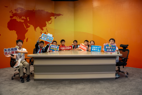卢湾一中心实验小学学生依次参观“法”字石、“时光回廊”和图书馆。同学们还在模拟法庭沉浸式体验庭审角色;在上海纪录片学院实训中心化身“新闻小主播”,感受镜头前的高光时刻。志愿者们以“青言青语”传递法治力量,让崇尚法律的种子悄然扎根于小学生心间。活动还引导同学们深切感悟“刻苦求实、开拓创新”的校训精神,在沉浸式体验中体悟新时代法治信仰的深厚根基。