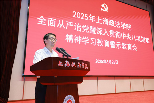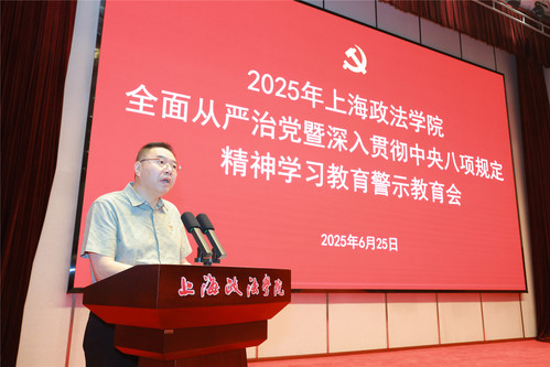 葛卫华在讲话中强调,在全面建设教育强国的新征程上,全校各级党组织和党员干部要以“朝受命、夕饮冰”的事业心,将全面从严治党的成效转化为“闯”的魄力、“创”的智慧、“实”的作风,把中央八项规定精神刻进骨子里、融入血脉中,让“两个维护”成为最鲜明的政治底色,使清风正气充盈每一间教室、每一处角落。一是要从中央、市委对形势的判断中保持清醒、明晰责任、领悟要义,着眼于立德树人根本任务和学校事业发展目标,聚焦重点领域,强化政治建设,深化系统整治,毫不动摇地把党风廉政建设和反腐败斗争引向深入。二是要深刻汲取违反中央八项规定精神和由风及腐典型案例的教训,进一步知敬畏、存戒惧、守底线,深化风腐同查同治力度,巩固拓展巡视整改和党纪学习教育成果,涵养天朗气清的校园政治生态。三是要清晰把握时代责任和管党治校办学的政治方向,聚焦习近平总书记考察上海重要讲话精神,聚焦党中央、市委全面深化高等教育综合改革的战略部署,及时查找问题,精准推动工作落实,扎实推进具有鲜明政法特色的一流应用型大学建设。