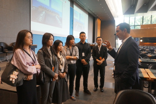多元参访:搭建国际合作新桥梁。在联合国会议中心(万国宫)驻留期间,联合国官员Shyami Puvimanasinghe向研学团介绍了联合国在促进教育公平方面的工作成果。世界贸易组织官员Fernando Puchol带领研学团参观了世贸组织总部大楼等,详细讲解WTO的磋商会议程序、决策机制以及中国参与全球经贸治理的实践,并就“中国WTO模拟法庭”赛事与学生深入交流。