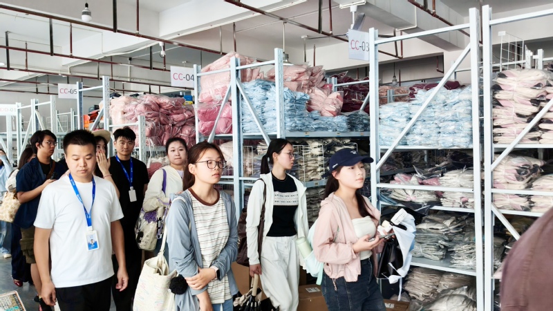 本次研学活动旨在打破课堂边界,构筑实践育人新场景。师生们实地考察了园区现代化童装生产车间及配套市场,沉浸式体验了从设计、生产到市场流通的服装产业链全流程。生产一线工人们严谨专注、精益求精的“工匠精神”和吃苦耐劳的实干作风,为同学们树立了生动的职业榜样,深化了对实体经济和制造业的理解。