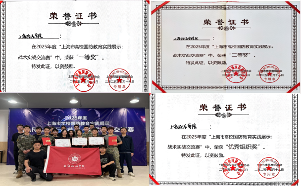 为深化大学生军事教学改革,增强大学生对于国防教育的热情,提高军事理论课教学质量,强化学生军事技能和综合国防素质,上海市学生国防教育协会于5月18日举办了2025年“上海市高校国防教育实践展示战术实战”交流赛,来自全市40支精英队伍同场竞技,我校两支代表队凭借出色表现,斩获团体“一等奖”“二等奖”,学校荣获“优秀组织奖”,武装保卫部(处)叶尔江和警务学院陈浩两位老师被评为优秀教官。