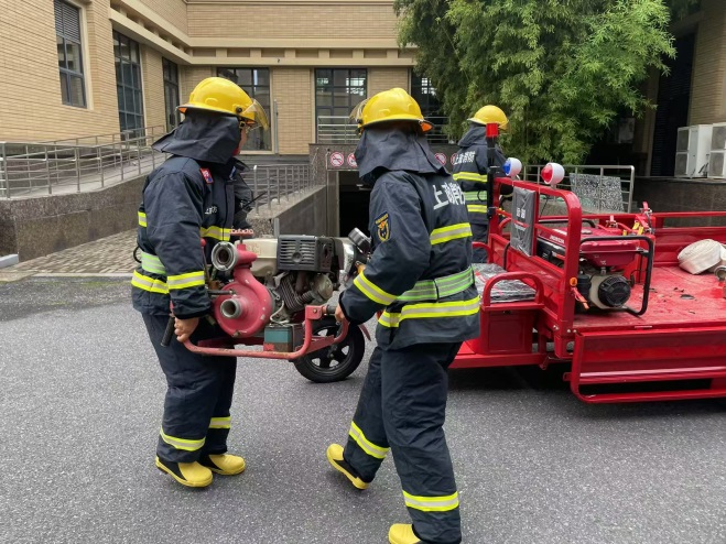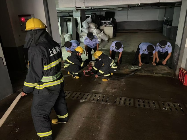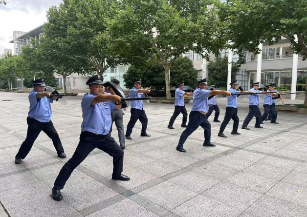 学校保安队对上半年的军事技能训练成果进行了展示,组织保安队员对队列训练、警棍盾牌操进行了演示汇报,并根据暑假期间面临防台防汛的任务,组织了以图书馆地下空间积水的应急处置演练,提升了保安队伍的技能水平和应急处置能力,取得了良好效果。