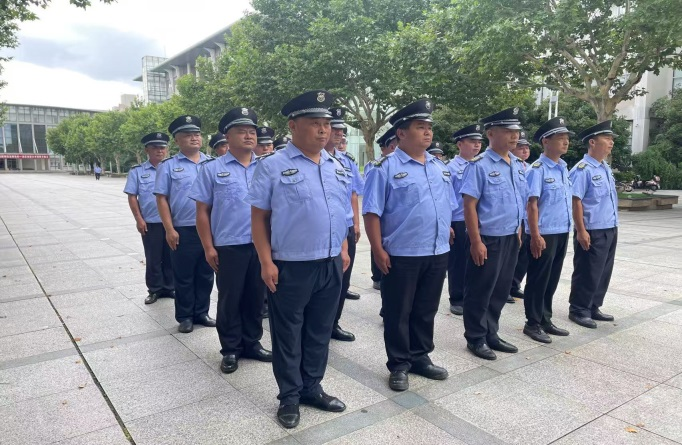 为进一步筑牢校园安全防线,提升安保工作水平,确保校园安全稳定,武装保卫部(处)于7月12日上午召开上半年安保工作总结会,并组织训练成果展示和防台防汛应急演练。保卫处人员、保安公司相关负责人及全体安保人员参加,活动由武装保卫部(处)长潘高荣主持。
