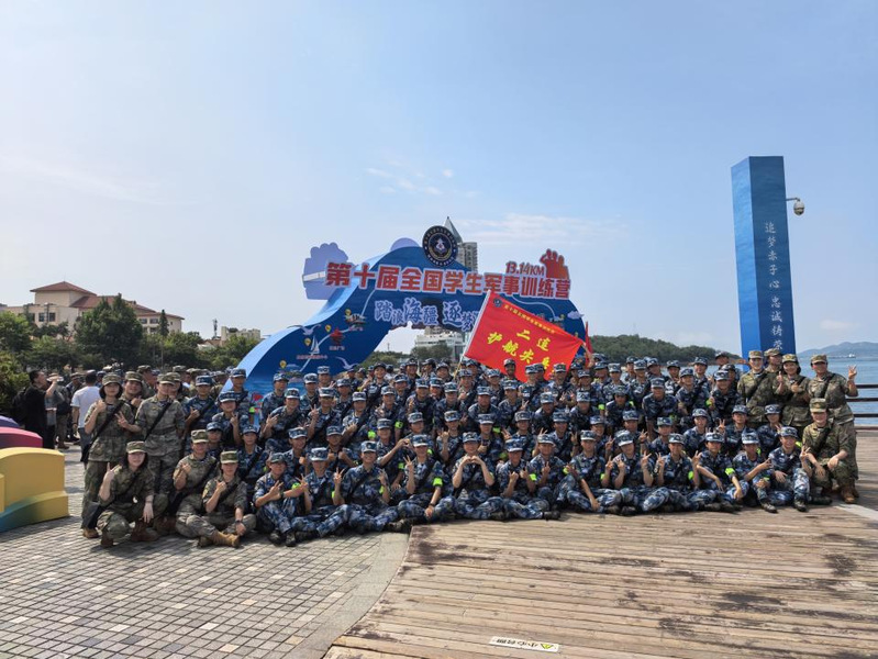 我校学生在前期参加由上海市教育委员会、上海警备区战备建设局联合主办的“上海市学生军事训练营暨第十届全国学生军事训练营遴选”活动的基础上,最终有3名学子经遴选入围全国学生军事训练营。7月25日,第十届全国学生军事训练营在海军潜艇学院正式拉开帷幕,今年训练营紧紧围绕“踏浪海疆,逐梦深蓝”的主题,全身心投入各项训练任务,训练营在严格落实学生军训大纲的基础上,突出海军特色,精心设置了丰富多元的训练科目,通过海军大讲堂、航海训练、水上技能训练等多元教学形式,全面提升了学生的国防意识和军事素养。学员们从最初的晕船不适到逐步适应,从基础操作到实战模拟,不仅学习了航海知识、接受了军事技能训练,而且锤炼了意志,丰富了国防教育经历。