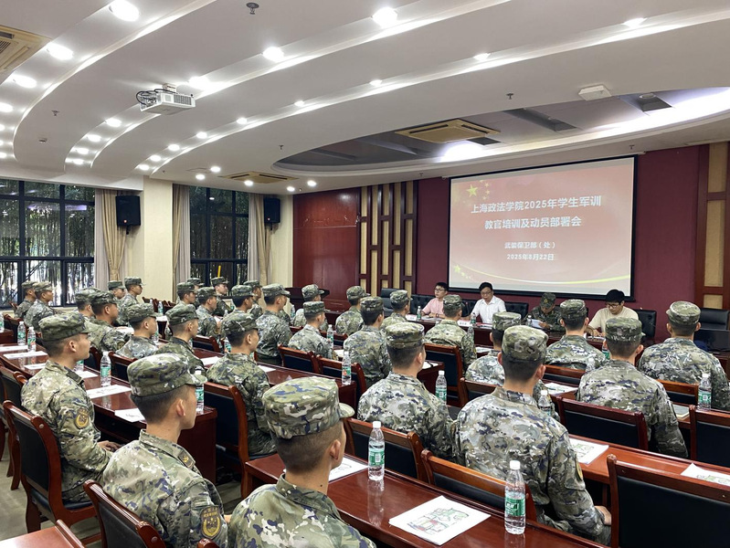 为规范学生军训工作的安全管理,提升学校军训工作的质效,8月22日上午学校武装保卫部(处)组织2025年学生进行教官培训和动员部署会,武警执勤三支队五大队50余名参训的教官参加会议,会议由武装保卫部(处)长潘高荣主持。