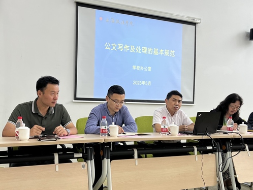 荣道福主要从公文的法定格式、几种常用公文的撰写以及校内日常公文处理问题解析等方面,向全体与会人员详细介绍了公文写作与处理的基本规范,并结合工作实际分享了几点心得。
