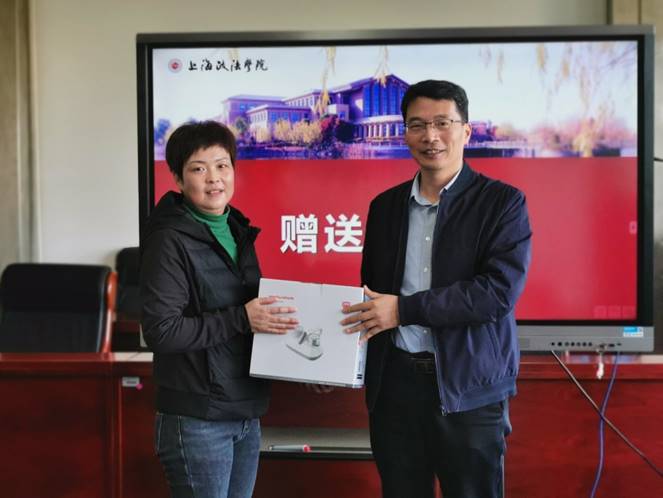 仪式伊始,高志刚代表党办校办向陆满娟老师赠送荣休纪念品,郭小杰作为最年轻教师代表向陆满娟老师献花。