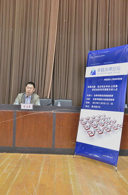 卓越法律论坛揭牌仪式结束之后,“卓越法律论坛”第四期由法律学院法律学院诉讼法教研室主任张进德副教授主讲了“走过司法考试——以民事诉讼法的司考逻辑为切入点”。张进德副教授用生动幽默的语言梳理了历年司法考试的特点,总结了应对司法考试的经验,从民事诉讼法的司法逻辑进行切入,深入浅出的进行分析,讲座情景交融,鞭辟入里,在场的同学们深受启迪,同时也树立了成为卓越法学人的职业发展方向。(丁明强、高娅琪撰稿 周逸灵摄影)