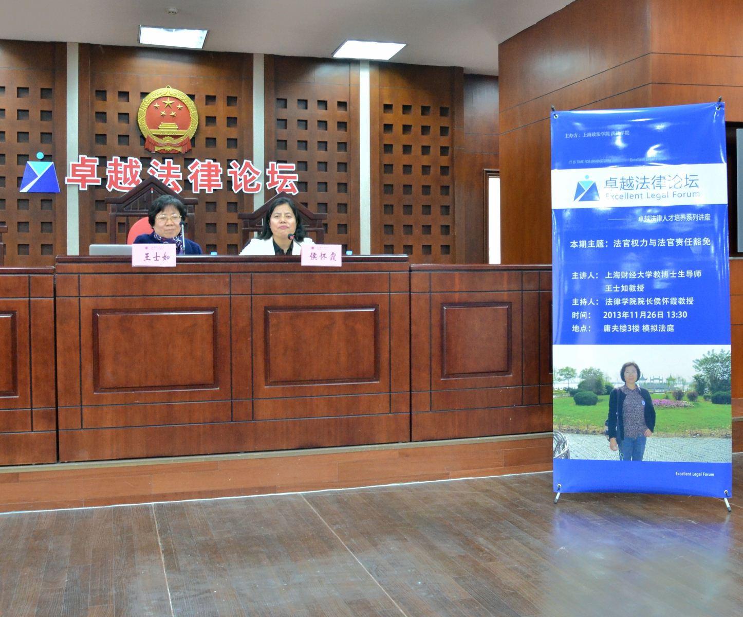 11月26日下午,上海财经大学博士生导师王士如教授做客法律学院第六期“卓越法律论坛”,主讲了《法官权力与法官责任豁免》,此次讲座在庸夫楼模拟法庭举行。法律学院部分教师、研究生和本科学生参加此次讲座,本次讲座由法律学院院长侯怀霞教授主持。