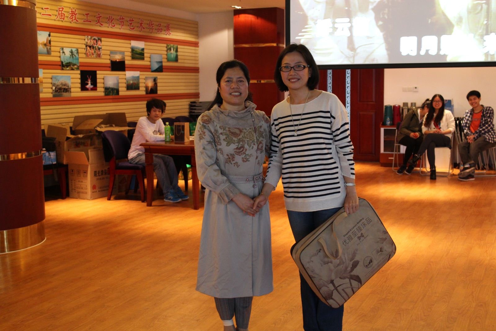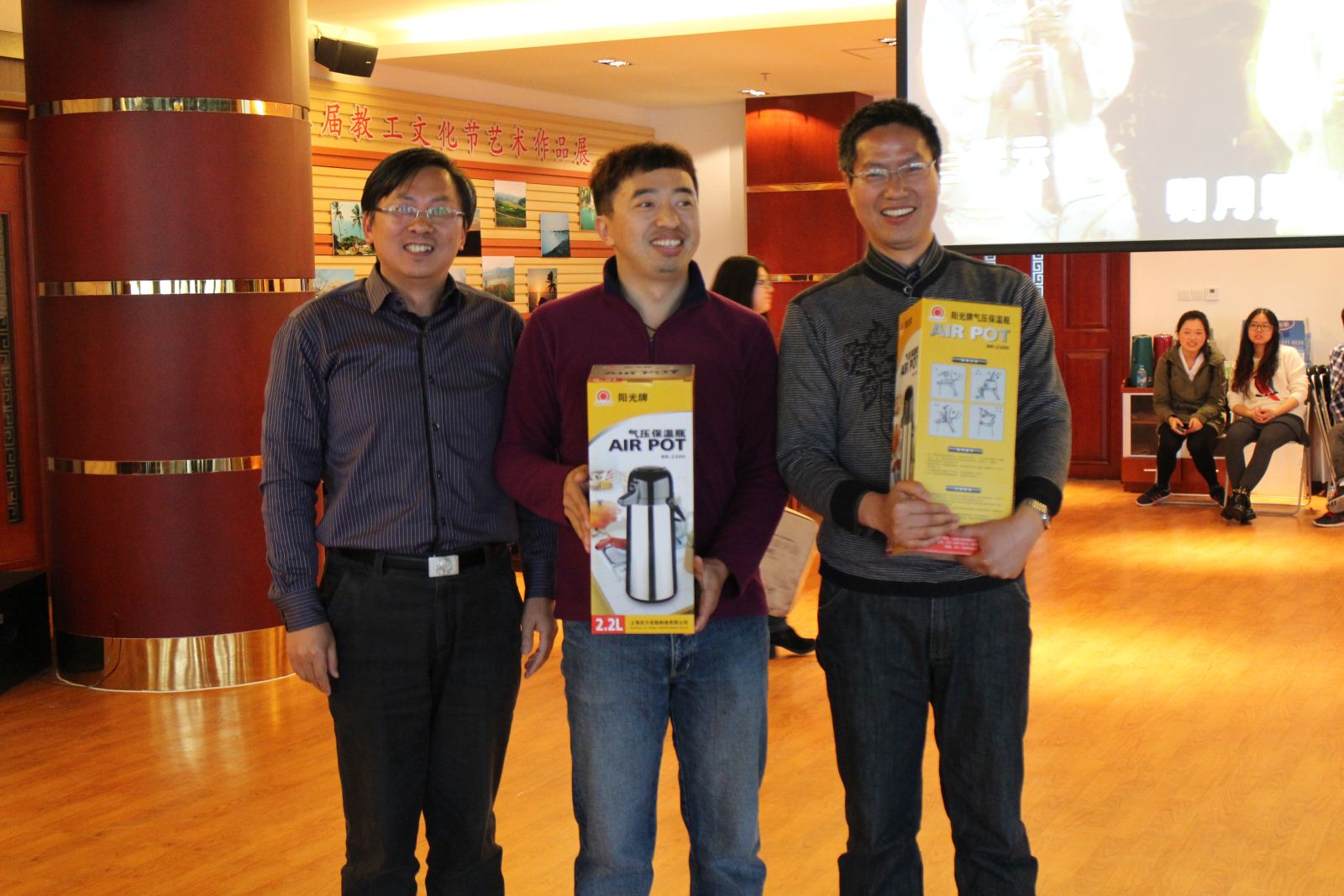 随后在互动环节中,主持人介绍了两个小游戏,“抢凳子”和“歌词大作战”,由每个教研室派出一名代表参加,音乐一起,气氛达到高潮,随后根据游戏成绩评出了一、二、三等奖,老师们表示玩的尽情尽兴。在抽奖环节,几名老师手中的号码被抽中,赢得了丰厚奖品。