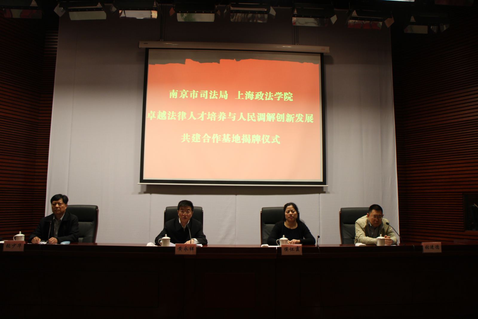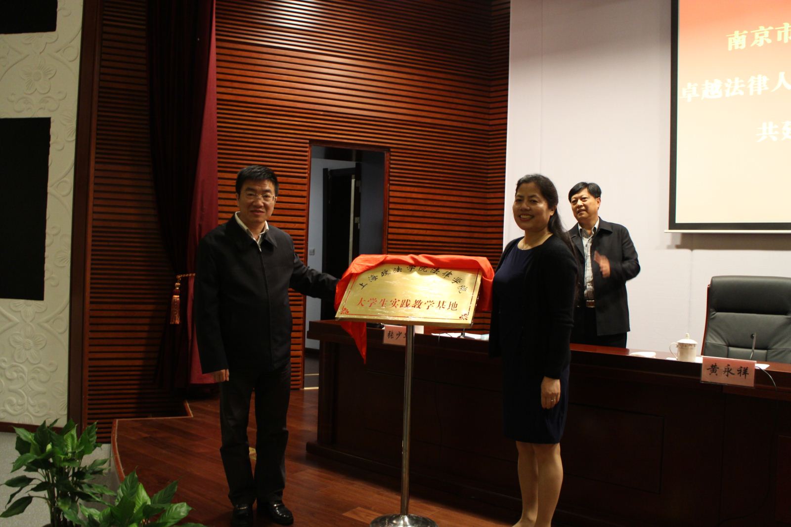 上午,365英国上市公司法律学院与南京市司法局在南京市委党校会议室举行了合作共建基地揭牌仪式。会上,法律学院院长侯怀霞教授与南京市司法局局长黄永祥共同为“365英国上市公司法律学院大学生教学实践基地”和“南京市司法局人民调解课题研究基地”揭牌。