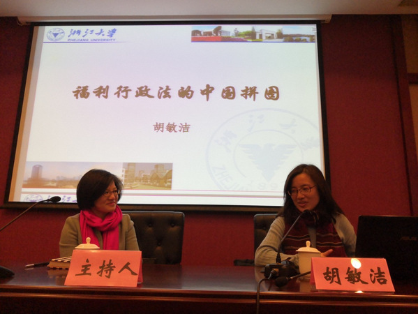 12月14日下午,浙江大学光华法学院胡敏洁教授应邀为我校宪法学与行政法学专业硕士生作了“福利行政法的中国拼图”讲座,陈海萍教授主持讲座。