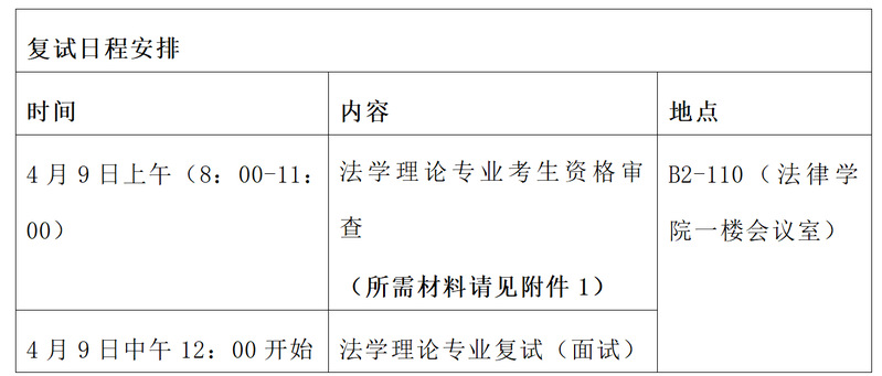 我院拟于2023年4月9日进行法学理论专业的资格审查与复试。