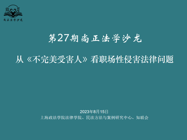 815日晚,法律学院、民法方法与案例研究中心、知联会共同在线上举办第27期研究生“尚正法学沙龙”。本次沙龙以“从《不完美受害人》看职场性侵害法律问题”为主题进行讨论交流,吸引了法学专业多名研究生参与讨论。
