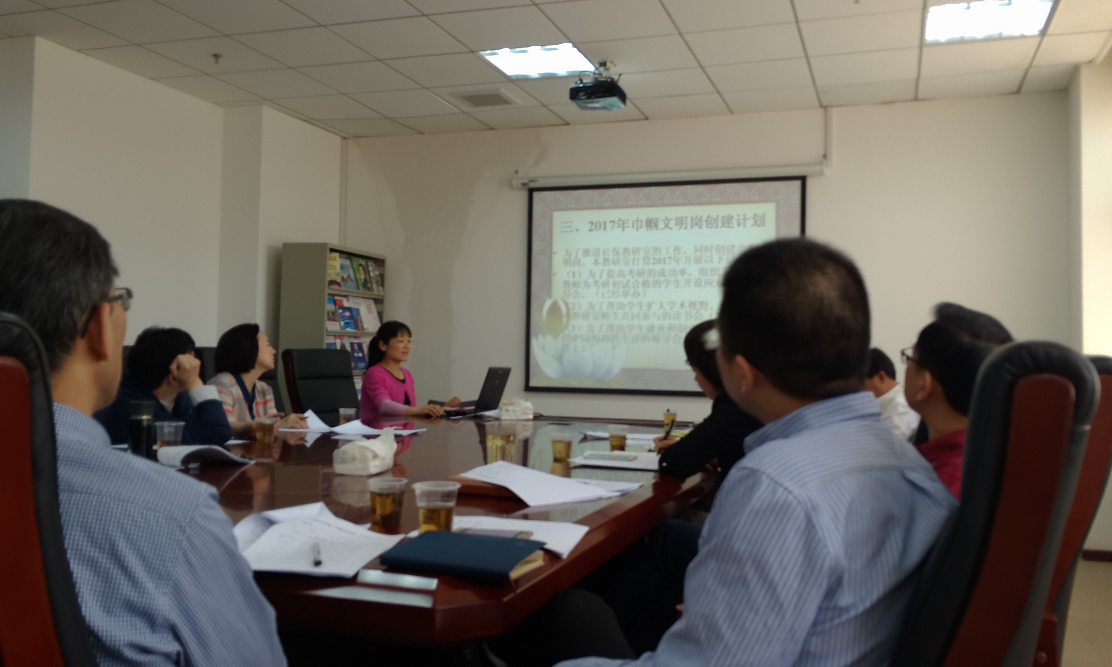 会上,各“巾帼文明岗”申报集体负责人对本集体的“巾帼文明岗”创建目标、创建计划、创建内容、特色特点及近期成果进行了ppt展示和说明。各申报集体展示内容丰富,特色明确。如经济管理学院提出开展感恩母亲的倡议活动,对学院已孕女性表示关爱;文学与传媒学院学生工作团队希望通过培训、宣传、公益、访谈及妈咪小屋的建设,打造干练、魅力、温暖、智慧的女性形象;国际事务与公共管理学院学工团队秉持着“全心全意为学生服务”的工作理念,开展周五沙龙活动,并将制作 “幸福工作集”“我的影响力”案例集等,加强女教工之间的交流学习,以提升自身工作能力。