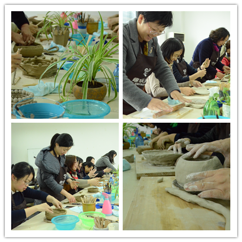 活动之初,女老师们一起参观了陶艺工艺品,各种陶艺教材、陶艺制作工具以及作品等,使大家对陶艺有了较全面的了解。活动现场,陶艺师教授陶艺制作方法,展示捏陶塑形、烧陶定型等工序,女同胞们悉心聆听、用心感受,兴趣盎然,发挥想象。柔软光滑的陶泥、瓷泥或高或低或圆润或棱角,在女同胞们灵巧的手中被制作成一件件独具匠心的陶瓷作品。在制作过程中,有的女同胞作品引发了全场的欢笑和评价,大家纷纷喜笑颜开地拍照,仿佛回到了童年时代,整个教室充满了欢声笑语。成品染釉色、烧制的步骤由陶艺馆安排时间完成,女同胞们在离开陶艺馆时谈到了“期待早日拿到经过上釉和烧制后自己亲手制作的作品”。
