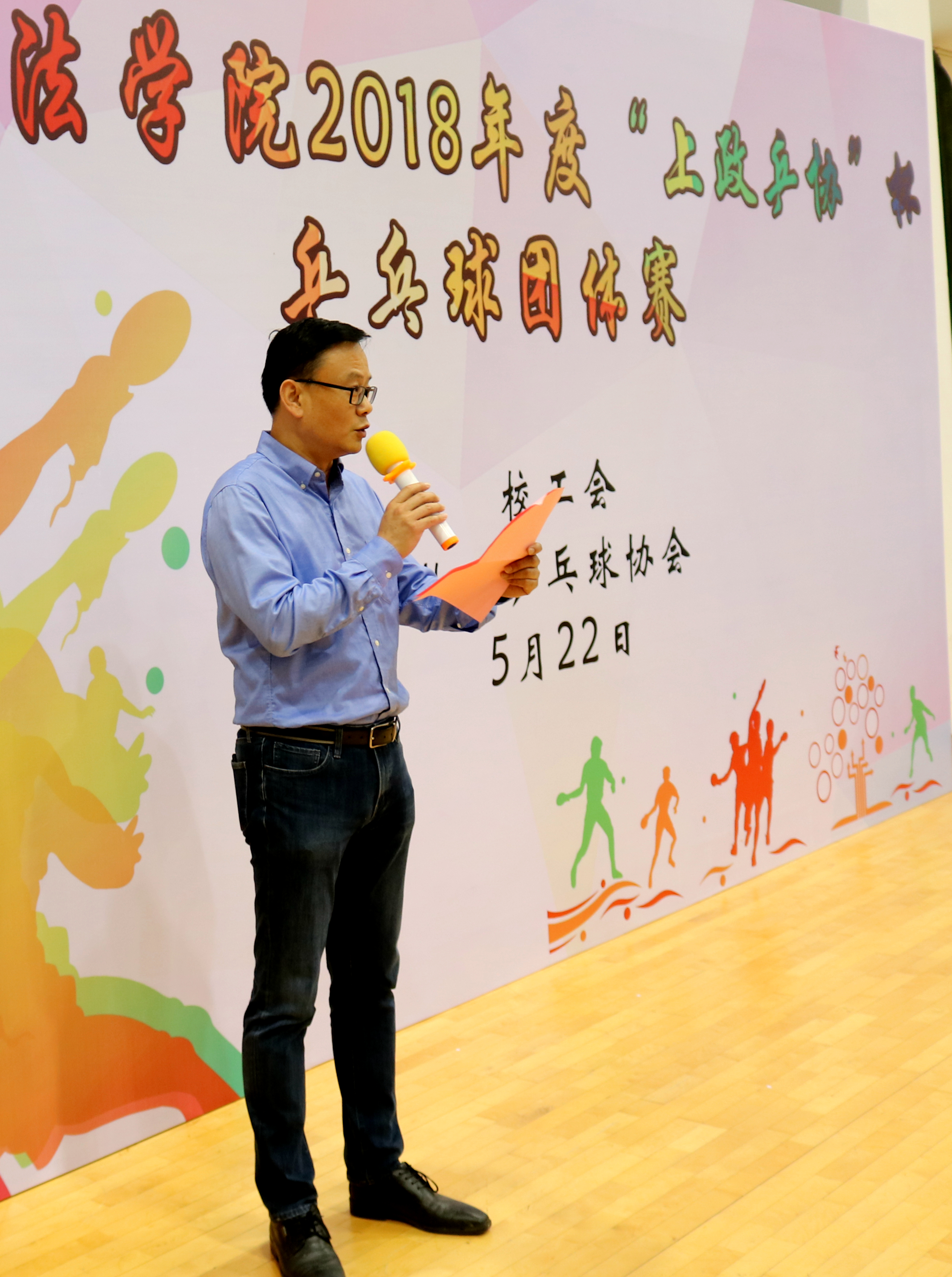 乒乓球团体赛开幕式由我校工会常务副主席周毅主持。