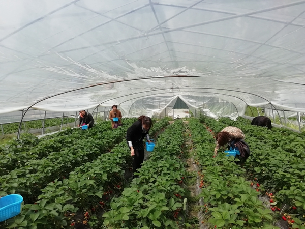 大家在踏青的过程中感受采摘果实的成就感,一扫平日生活和工作中的压力。大家通力合作、互帮互助,穿梭在草莓园之间,携手一起采摘草莓,交流着平日的工作、生活体会。