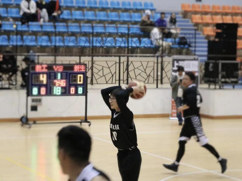 一开始,新生队凭着猛烈的进攻拉开了分差。但教工队稳住心态、不慌不忙,实现了分数的反超。