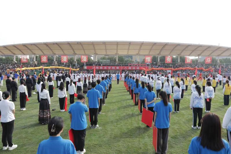 10月26日上午,第十八届教工运动会正式拉开序幕。在激昂的入场音乐和热烈的掌声中,国旗护卫队、校旗、红旗方队庄严入场。教工方阵代表队作为人数最多的一只方队压轴入场,教职工们迈着整齐划一、铿锵有力的步伐,昂首阔步走向主席台。他们面带笑容,自信从容,精神抖擞,犹如雄鹰准备叱咤风云,展现出我校教职工勇于拼搏、奋勇向前的积极面貌。