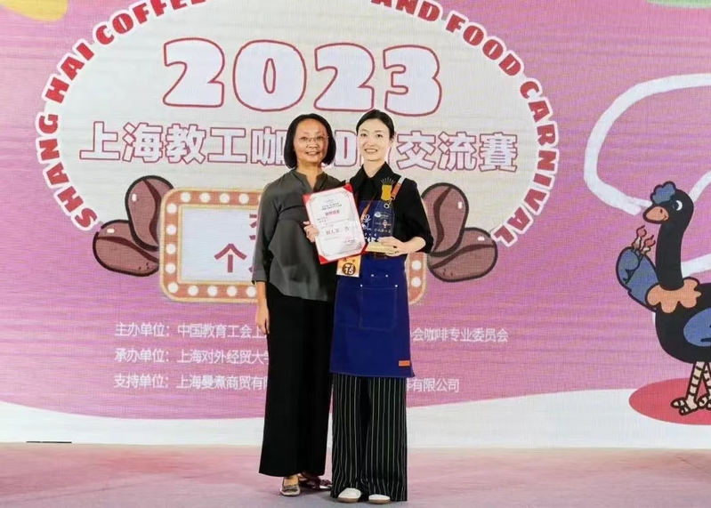 在比赛过程中,我校教师代表队团结一心、互帮互助,充分发挥出团队的力量并展现出了丰富的咖啡知识和高水平的咖啡制作技艺,在创意选择、研磨技术、拉花艺术等方面均有出色表现。我校郭佳眉老师最终也以扎实的专业技能和突出的个人特色在本次比赛中荣获个人第二名的优异成绩。