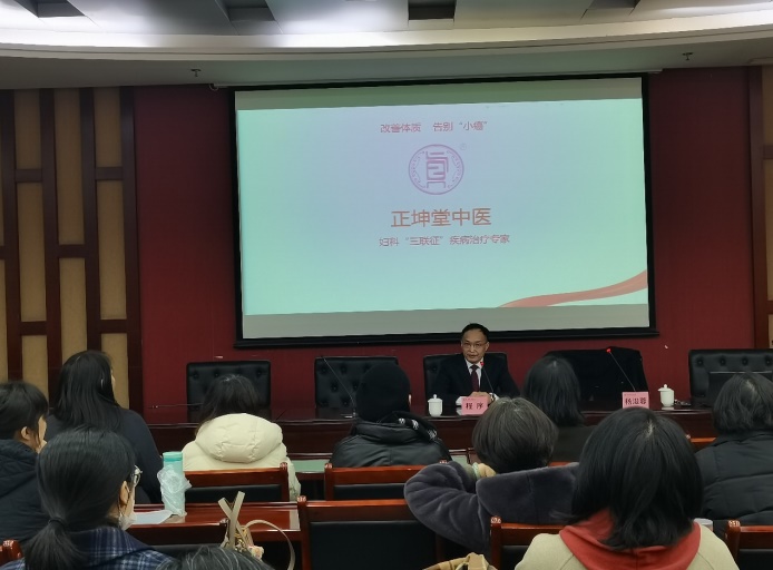 此次活动邀请了正坤堂传承人---中医专家程序和他的助手杨浚蓉医师进行了专题讲授和义诊,活动吸引了50余位女性教职工参加。讲座围绕妇科疾病产生原因、女性衰老疾病的研究与治疗,以“人的生命是很顽强的,人体具有自生发、自组织、自纠偏、自平衡的能力”的哲学思想,倡导“改善体质、调动自身的生机”,提醒大家践行健康生活理念,养成良好生活习惯。义诊期间,专家认真倾听教职工的讲述,详细分析病症,根据不同患者的身体状况,给出了明确的治疗建议与健康指导,并悉心讲解生活中相关的各项注意事项。
