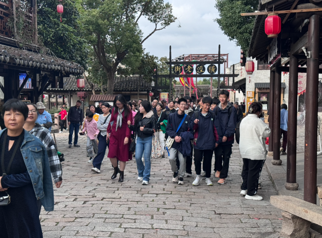 在芦苇荡景区,大家实地感受了当年革命战士与敌周旋的自然环境,更加深刻理解了游击战术的精妙之处。金色的阳光下,沙家浜的芦苇随风摇曳,秋高气爽的江南水乡展现出独特的魅力。老师们漫步于景区,或驻足拍照,或三三两两交流参观感想,其乐融融。
