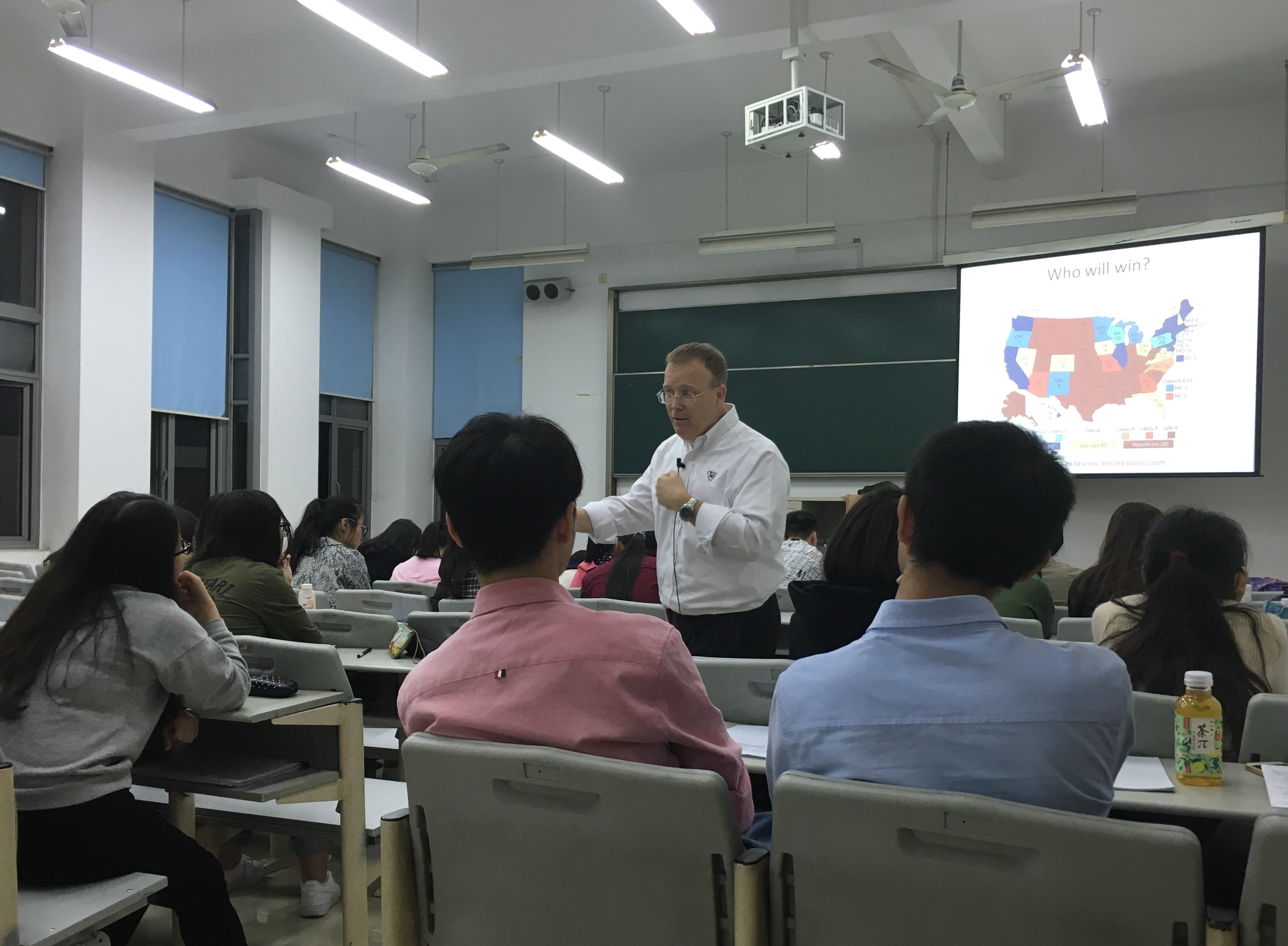 在讲座中,Andrew Clayton教授通过幽默风趣的授课方式不断与同学进行互动,详细介绍了美国法律制度的基本特征及近年的发展,为充实涉外法律英语学习内容、提高相关学习技能提供了启示。