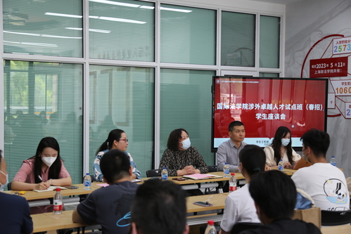 国际法学院高度重视春招生的培养工作,在参观完校园后举行了春招师生调研座谈会。首先,王守芬书记致欢迎辞,她讲道希望同学们能够励志明德、知行合一,做一粒闪闪发光的金子。其次,陈娜书记围绕学生活动、学科竞赛等方面讲解了国际法学院的人才培养工作,鼓励学生提升外语能力,勇敢走出去看世界。吴映萱老师介绍了国际法学院特色境外交流项目。随后,丁永建部长对春招学生提出了三点要求,一是志存高远,心怀国之大者;二是博览群书,提升综合素养;三是勇于实践,做好大学四年发展规划。最后,春招学生、家长围绕职业规划、3+1项目、外语能力提升等问题进行了提问,现场老师们耐心给予了解答。