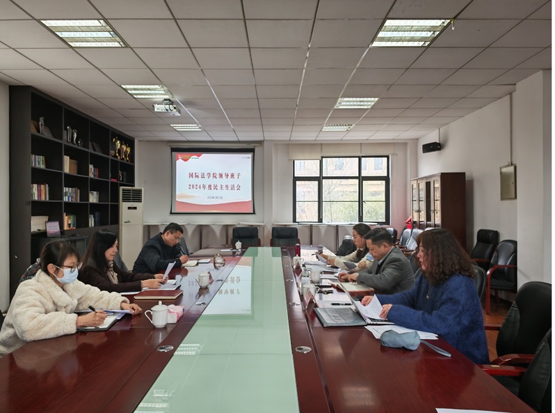 按照学校统一部署要求,2月25日,国际法学院召开领导班子2024年度民主生活会。校党委副书记、校长刘晓红,学校出席会议并指导。党办校办、党委组织部相关同志列席会议。国际法学院副院长石俭平、副书记陈娜参加会议。会议由石俭平主持。