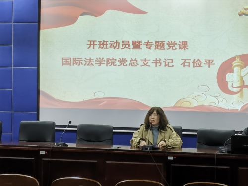 3月11日下午,校党委党校2025年第1期入党积极分子培训班于庸夫楼112室举行开班仪式。国际法学院党总支书记石俭平出席开班仪式作开班动员讲授主题党课。