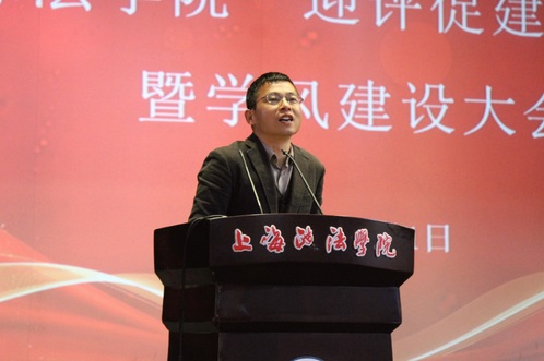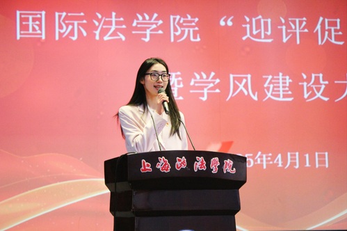 最后,国际法学院副院长吴永辉致辞,系统阐述了学院工作方向,凝聚师生共识。提出学生要有“五个保底”,同时强调全体学生要有积极的精神风貌,在课堂各个方面展现责任担当。老师们要以科研反哺教学,抓重点、补弱项,抓紧落实“迎评促建”各项工作。他呼吁全体师生要以此次评估为契机,坚守师生各自的岗位,以扎实的行动交出满意的答卷,为升级和建设高水平政法大学而奋斗。