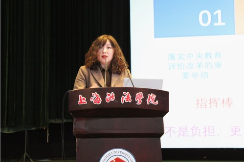 会议伊始,党总支书记石俭平作“扛牢评估责任,书写育人答卷”的动员讲话。她首先强调了本科教学评估的重要性,提出改变和创新是教育评估的最终目的,国际法学院全体师生应有强大的凝聚力和向心力,成为教育评估的优异样本。石俭平强调,教师在授课过程要有思政性引领,突出课程的特色性、高阶性。同时强调学生们要积极参与课程,展现良好的综合素质与能力。号召全体师生以新一轮审核评估为契机,推动高等教育高质量发展。最后,石俭平结合学院的本科教学工作以及自评报告,对全院师生进行了教学审核评估的辅导。