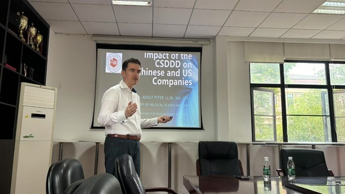 5月13日下午,“海外讲坛”第一百三十五讲在明法苑B1-217会议室举办。本次讲座以“Impact of the CSDDD on Chinese and US Companies”为主题,由国际法学院教授、欧盟委员会“贸易与可持续发展争端”专家仲裁员、斐石律师事务所顾问律师Adolf Peter主讲,国际法学院讲师刁语轩主持。