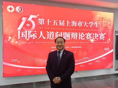 5月10日,第十五届上海市大学生国际人道问题辩论赛决赛在上海交通大学顺利举行,上海市人大常委会副主任、市红十字会名誉副会长周慧琳,上海市副市长、市红十字会会长陈宇剑,上海交通大学校长丁奎岭,中国红十字会副会长孙硕鹏,市政府副秘书长章雄,中国红十字会总会赈济救护部部长边晓,上海市红十字会党组书记、常务副会长李江英,上海市教育委员会副主任、市红十字会兼职副会长王浩等领导出席活动,活动上专门组建了上海市红十字会国际人道法传播顾问团,专家顾问团将致力于深化青少年国际人道精神的传播,我院教师盛红生教授方瑞安博士受聘为顾问团成员。