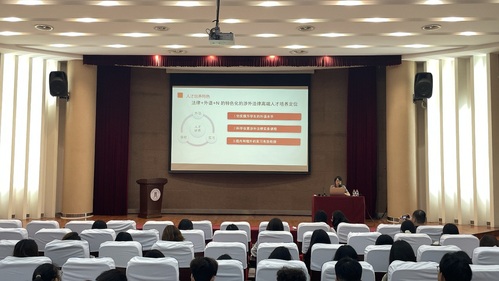 同日,宣讲团转赴河南工业大学法学院。贾琳老师以政策解读与现场互动的方式展开,她首先系统梳理了国际法学院硕士研究生的招生政策、培养方案及配套支持(如学业奖学金、国际交流平台等),继而针对学生关注的“实践能力培养”“就业前景”等问题逐一解答。宣讲活动得到了到访学院的大力支持,吸引了近百名法学院学生参加。