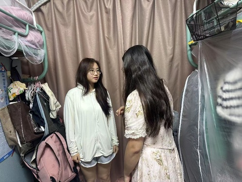 (2)辅导员于晓艳老师走进留校学生宿舍,把安全叮嘱送到同学们身边。她结合案例重点强调:宿舍里严禁使用违章电器,充电宝也要规范使用;外出尽量结伴而行,遵守交通规则,骑行务必戴好头盔;同时要注意饮食卫生,及时调节身心状态。这场面对面的走访,让安全意识更深入同学们心中,为大家的暑期留校生活筑牢了防线。