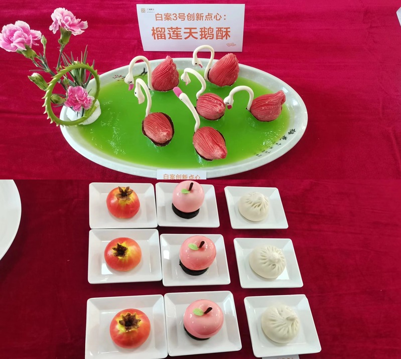 此次比赛共有20组参赛队伍,分为红白两组。红组负责做各种的特色美食,白组则负责做各种美味面食、点心。参加队伍信心满满、大显身手制作出各种精致的美食,色、香、味综合成绩佳者为优,评委对各美食进行了评点。