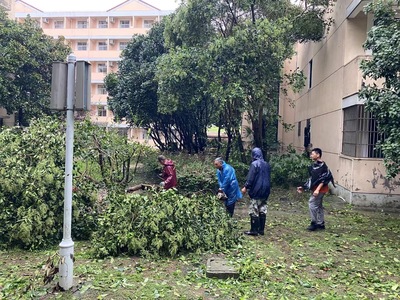 扎实做好校园环境恢复工作。受台风“贝碧嘉”侵袭影响,校园内多处公共区域存在树枝和杂物垃圾散落现象。为进一步营造安全、优美校园环境,9月16日下午和17日全天,后勤保障处及时制定台风后恢复应急措施、修缮计划,严防次生灾害,全力维护校园秩序平稳。