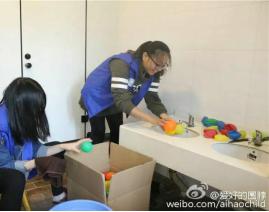 陪护结束后,我们留下来帮助学校工作人员清洗海洋球,希望给孩子们营造一个干净卫生的康复训练环境。