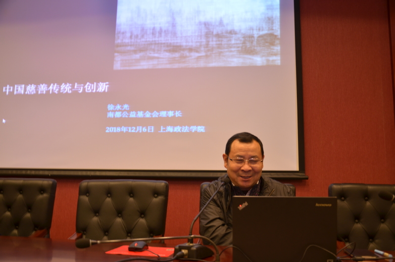 徐老师以幽默的语言和讲故事的方式,从孔子“鳏寡孤独皆有所养”、孟子“恻隐之心人皆有之”、王阳明“四句教”、费孝通“差序格局”理论等先贤之训开始,并结合我国历史上存在的“范蠡三散千金”、“义田义仓”制度、“历代帝王嘉奖慈善”等行为,梳理了我国慈善理论的源头和作为,并指出慈善的传统在中国源远流长,创新性的提出“自他二利的慈善伦理”。从“邓小平给希望工程捐款”、“一个死刑犯的慈善捐款”、“美国电影《心的方向》”三个故事阐述慈善具有超强的影响力和号召力,具有真善美的真谛和救赎灵魂的功能。