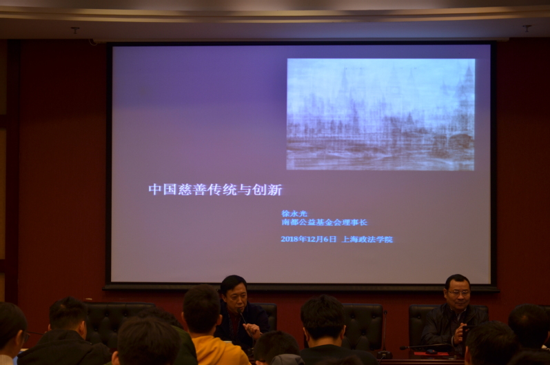 在讲座的最后,引用《庄子》中“混沌之死”的例子提出“公益创投和混合金融,令公益与商业的边界趋于模糊,这个模糊地带正是社会创新的精妙之处,活力空间,混沌所在”,并针对同学们的“法律是否应有恻隐之心”等问题告诫同学们在工作中一定要坚持原则、同时也要大胆的去冒险,不要害怕犯错误,只有这样才能更快速的成长。(撰稿人:高振威、许璐娜/摄影人:李帅)