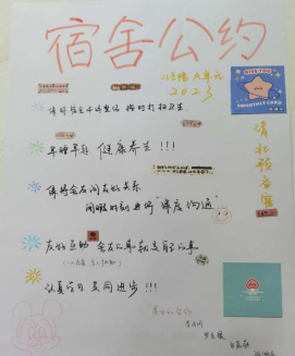 DIY 寝室公约”鼓励了同学们坦诚地说出自己对寝室的期望,促进室友间关系良好发展。妙趣横生的寝室游戏加强了宿舍成员、班级同学之间的互动,增强班集体的凝聚力,有效拉近同学之间的距离。