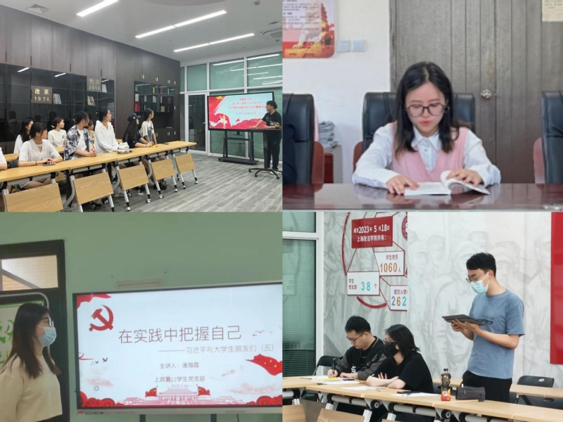 上政第12学生党支部开展“每周思享”读原著《习近平与大学生朋友们》与《习近平新时代中国特色社会主义思想专题摘编》,重点以“在实践中把握自己”和“创新是引领发展的第一动力”两个部分为基础带领支部深入学习研讨,不断加强党员的思想建设。