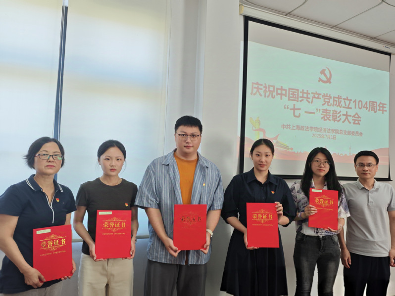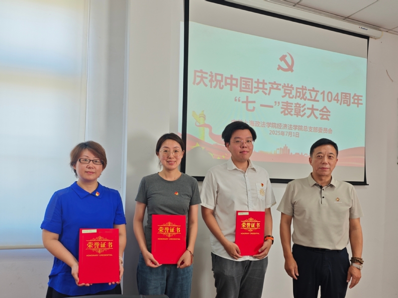 为庆祝中国共产党成立104周年,加强新时代党的作风建设,强化党性意识,选树典型示范,2025年7月1日,经济法学院隆重举行庆祝中国共产党成立104周年暨“七一”表彰大会,学院党政领导班子、师生党员代表、受表彰的先进集体、先进个人参加会议。会议由胡戎恩主持。