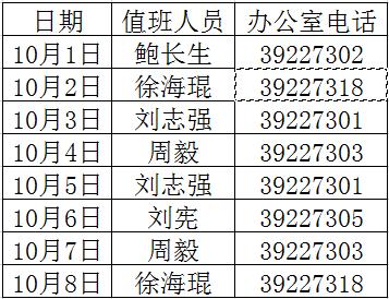 经济管理学院领导班子国庆中秋值班安排表