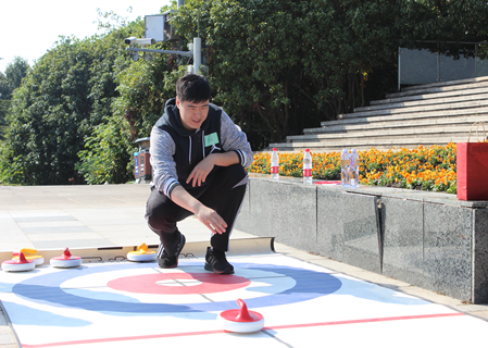 第九个任务点 “雪山冰壶”,雪山上严峻的气候给红军的长征带来了严重的挑战。“更喜岷山千里雪,三军过后尽开颜。”此任务点教职工们进行投冰壶的团队积分赛,冰壶就如雪被红军队伍走过后那厚厚的冰层,而冰壶的到达则象征着红军长征队伍翻越大雪山步入下一征程。