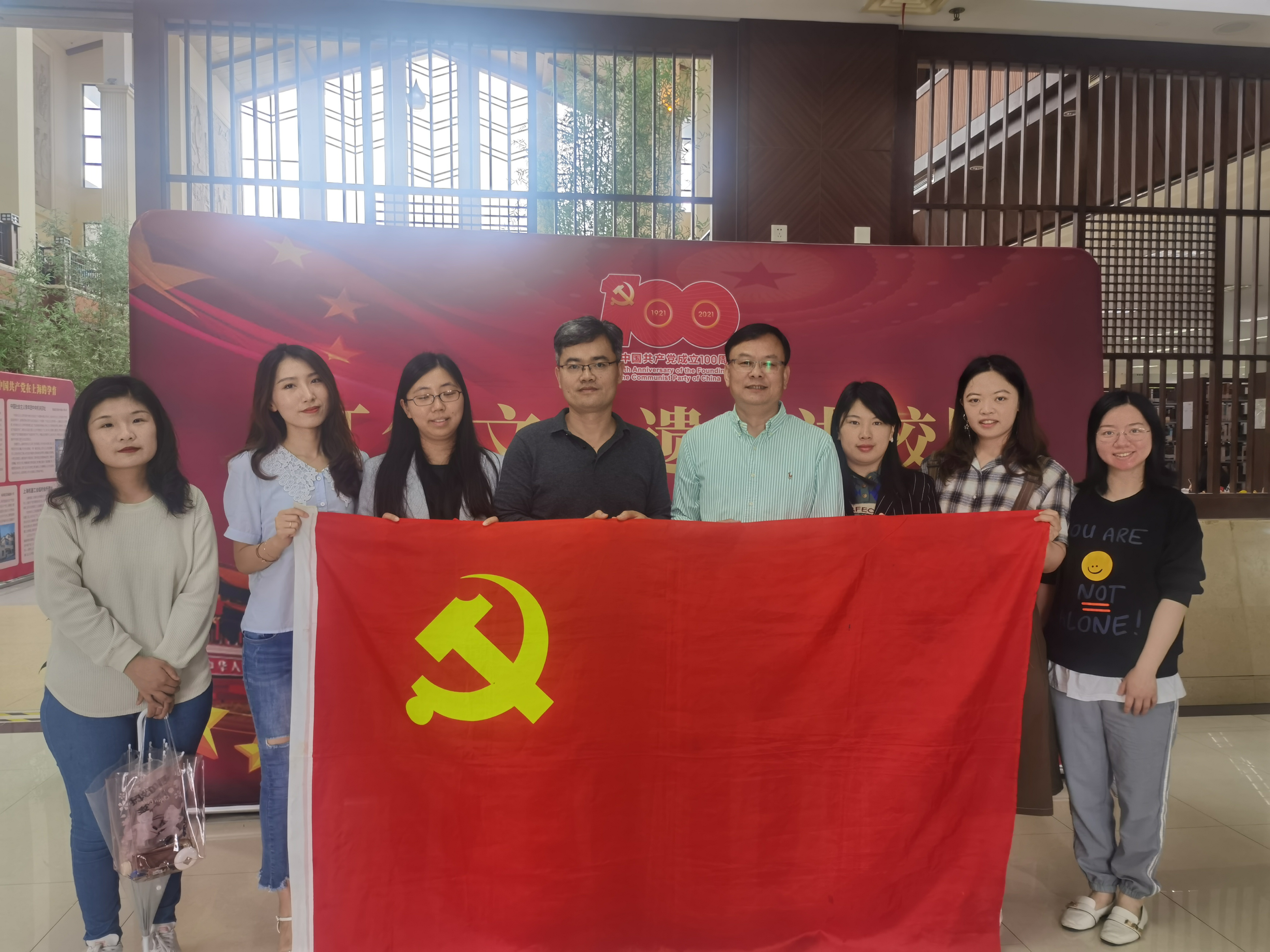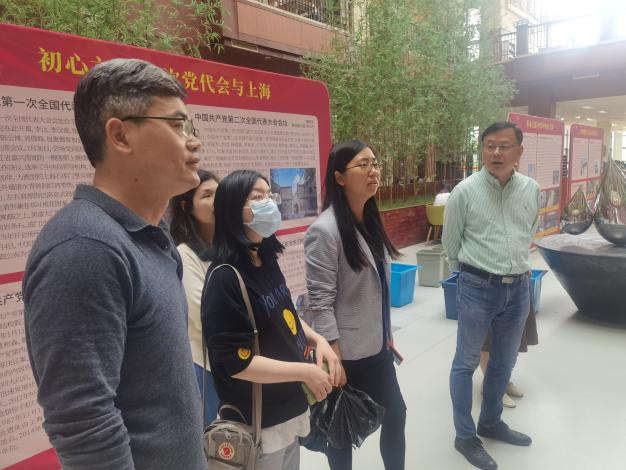 2021年5月11日下午,管理学党支部组织全体党员教师至图书馆一楼大厅参观“上海红色文化遗产进校园”巡展。